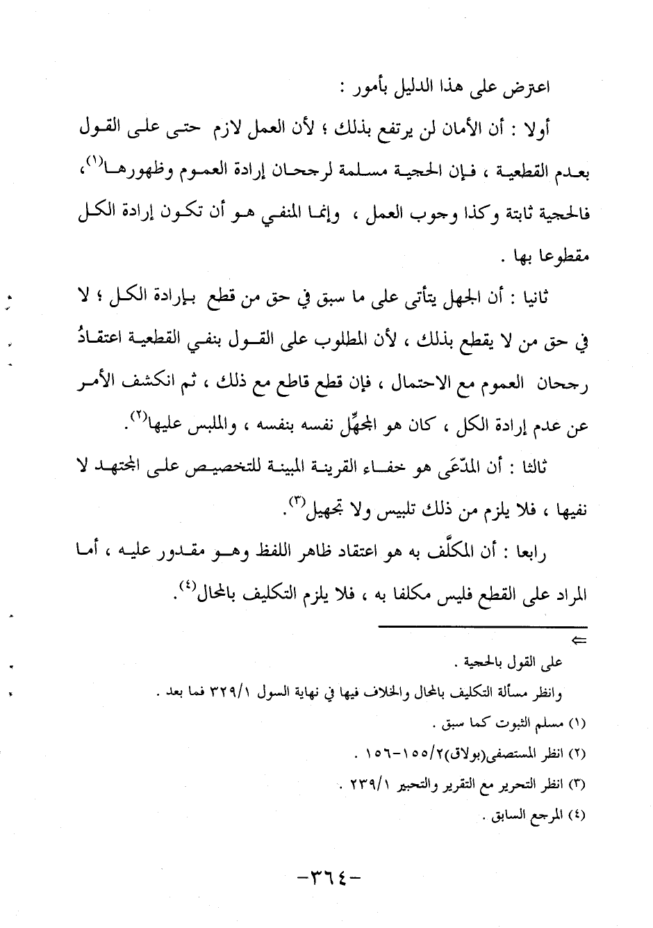 رابعا: أن المكلَّف به هو اعتقاد ظاهر اللفظ وهو مقدور عليه، أما المراد على القطع فليس مكلفا به فلا يلزم التكليف بالمحال4.