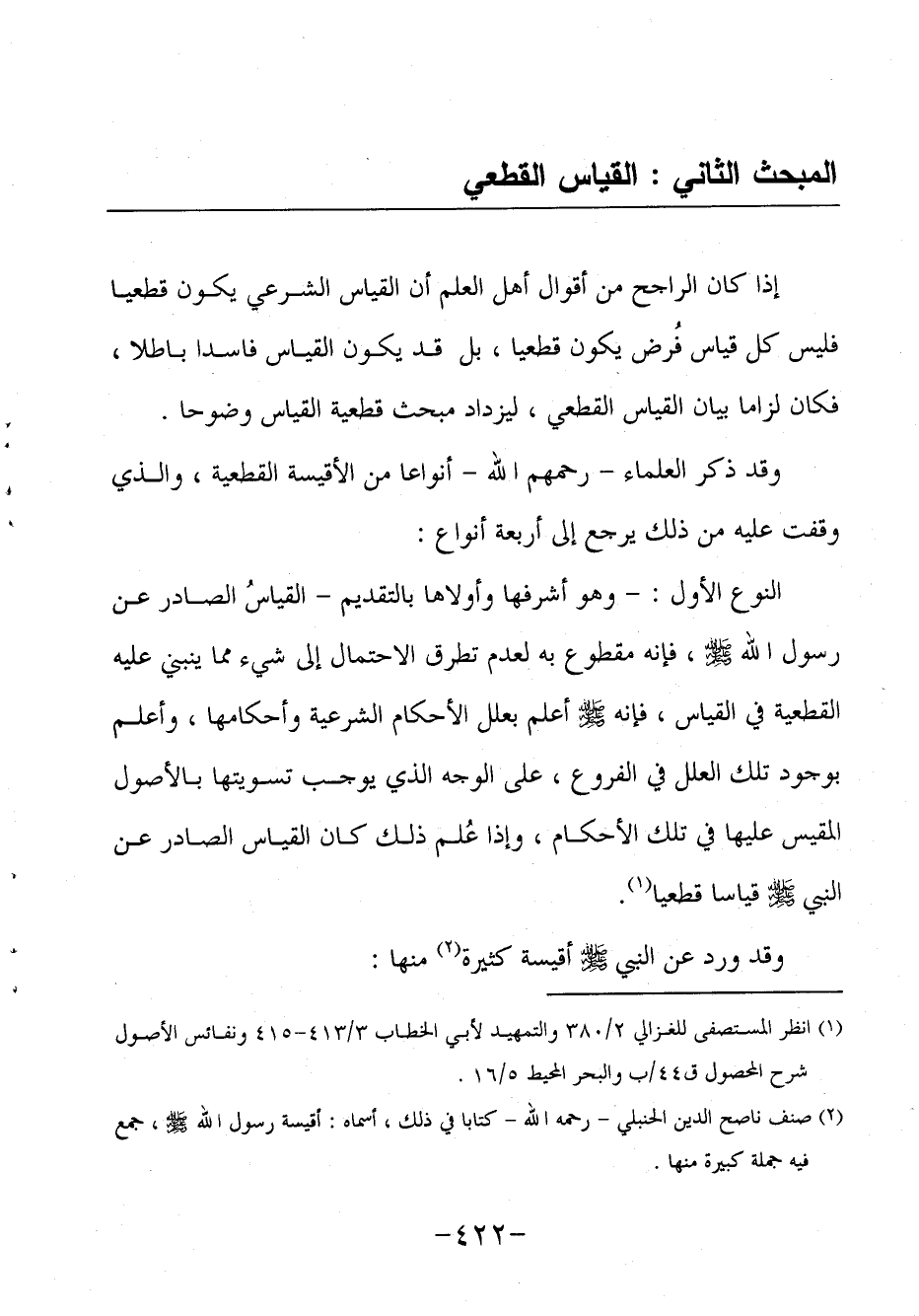 1 انظر المستصفى للغزالي 2/380 والتمهيد لأبي الخطاب 3/413-415 ونفائس الأصول شرح المحصول ق44/ب والبحر المحيط5/16.