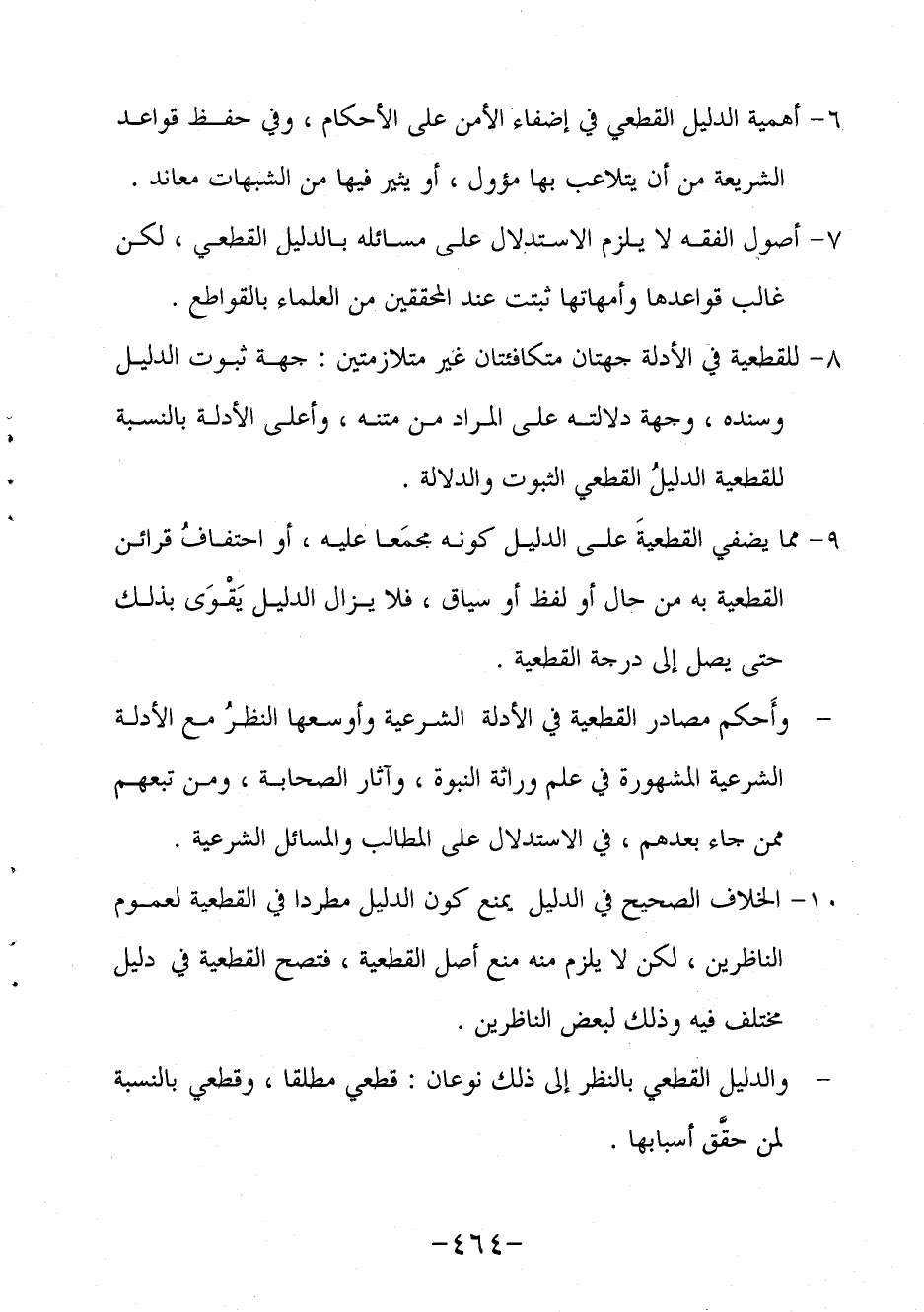 8- للقطعية في الأدلة جهتان متكافئتان غير متلازمتين: جهة ثبوت الدليل وسنده وجهة دلالته على المراد من متنه، وأعلى الأدلة بالنسبة للقطعية الدليلُ القطعي الثبوت والدلالة.