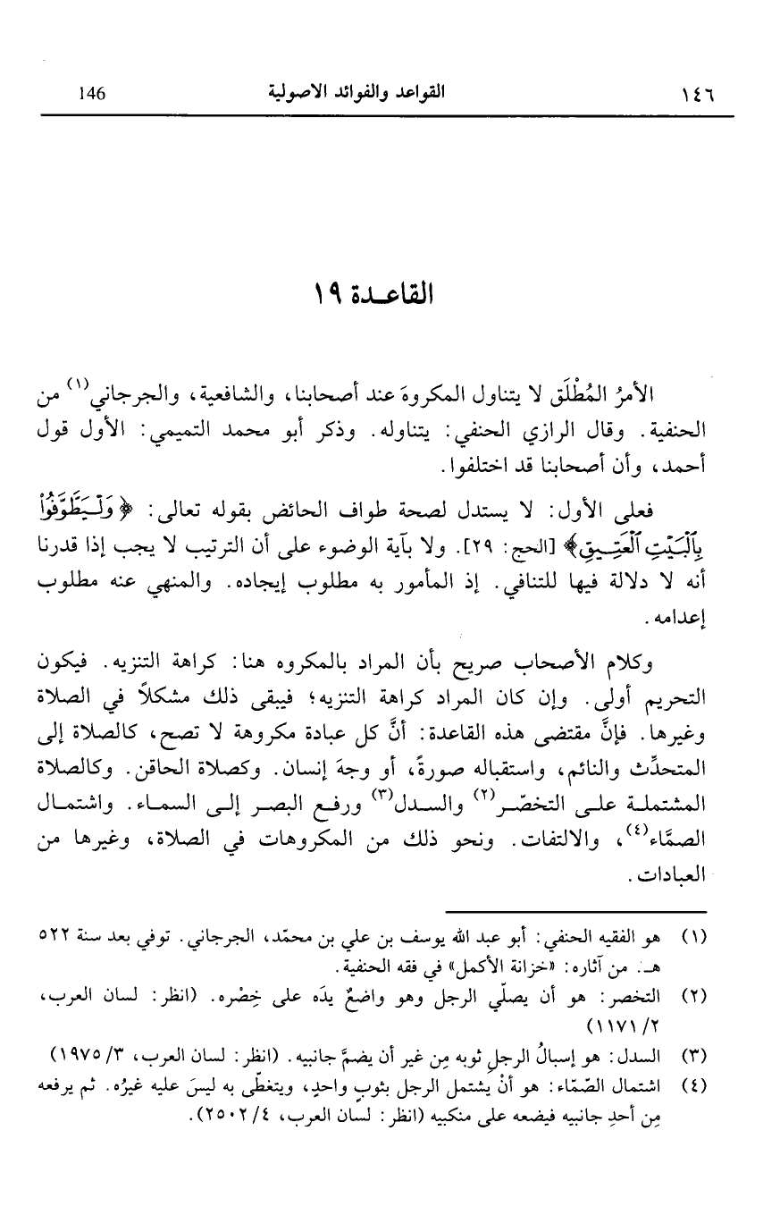 كتاب القواعد والفوائد الأصولية ومايتبعها من الأحكام الفرعية