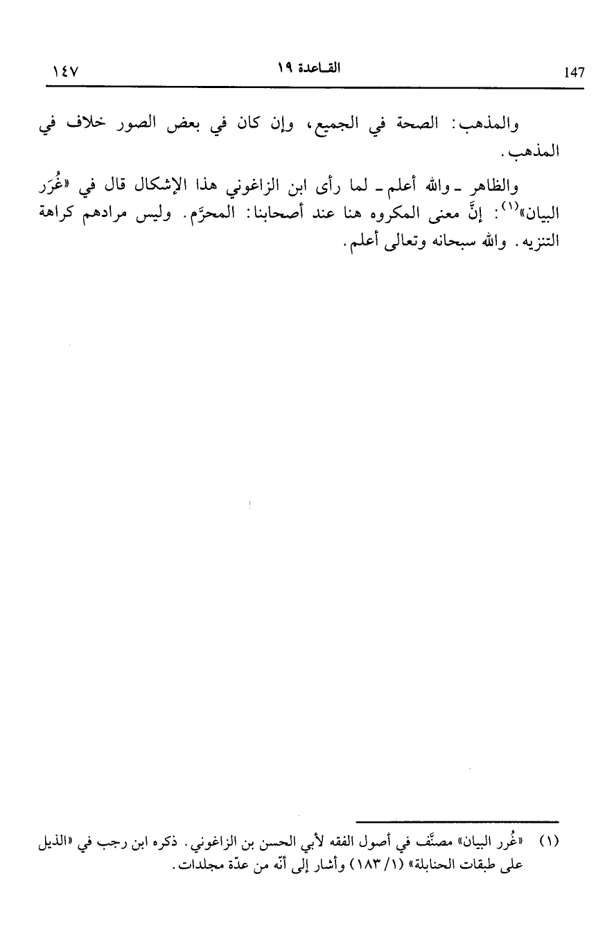 والظاهر والله أعلم لما رأى ابن الزاغونى هذا الإشكال قال في غرر البيان1 إن معنى المكروه هنا عند أصحابنا المحرم وليس مرادهم كراهة التنزيه والله سبحانه وتعالى أعلم.