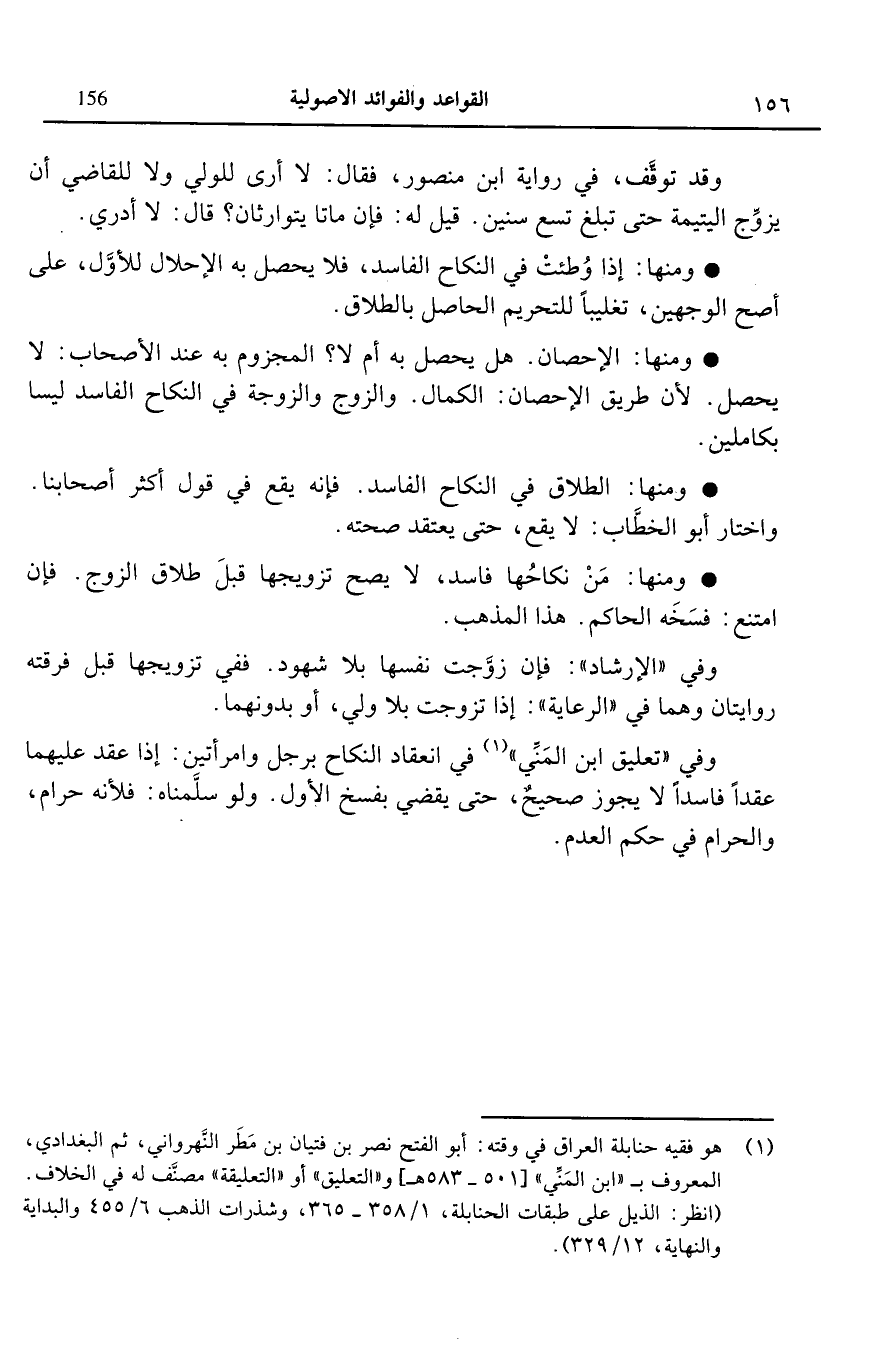 1 هو فقيه حنابلة العراق في وقته أبو الفتح نصر بن فتيان بن مطر النهرواني ثم البغدادي المعروف بـ "ابن المني" [501 – 583هـ] و"التعليق" أو"التعليقة" مصنف له في الخلاف انظر الذيل على طبقات الحنابلة "1/358 – 365" وشذرات الذهب "6/455" والبداية والنهاية "12/329".