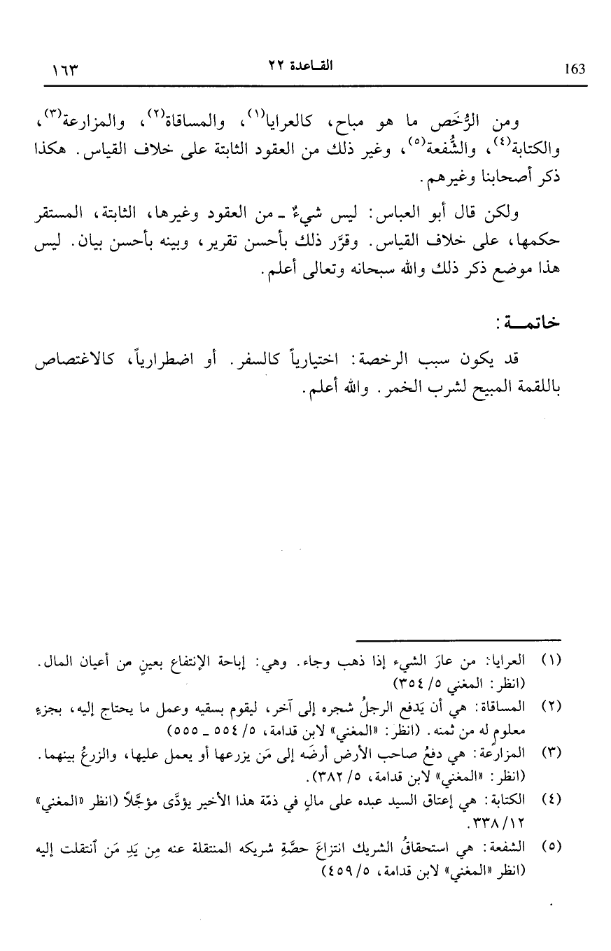 ومن الرخص ما هو مباح كالعرايا1 والمساقاة2 والمزارعة3 والكتابة4 والشفعة5 وغير ذلك من العقود الثابتة على خلاف القياس هكذا ذكر أصحابنا وغيرهم.