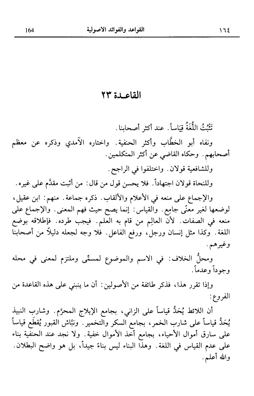 القاعدة 23: تثبت اللغة قياسا عند أكثر أصحابنا