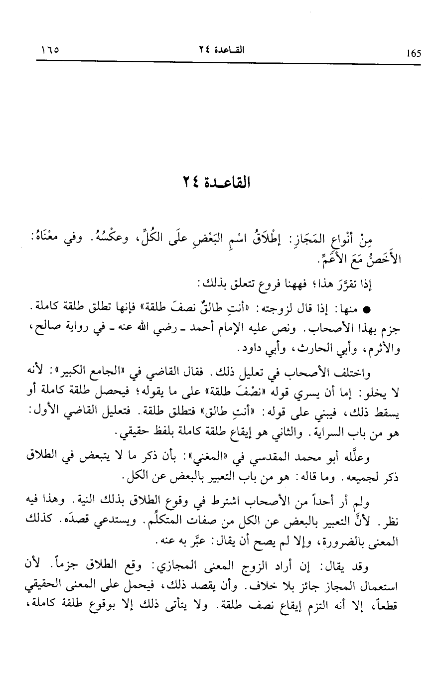 القاعدة 24: من أنواع المجاز إطلاق اسم البعض على الكل وعكسه وفي معناه الأخص مع الأعم