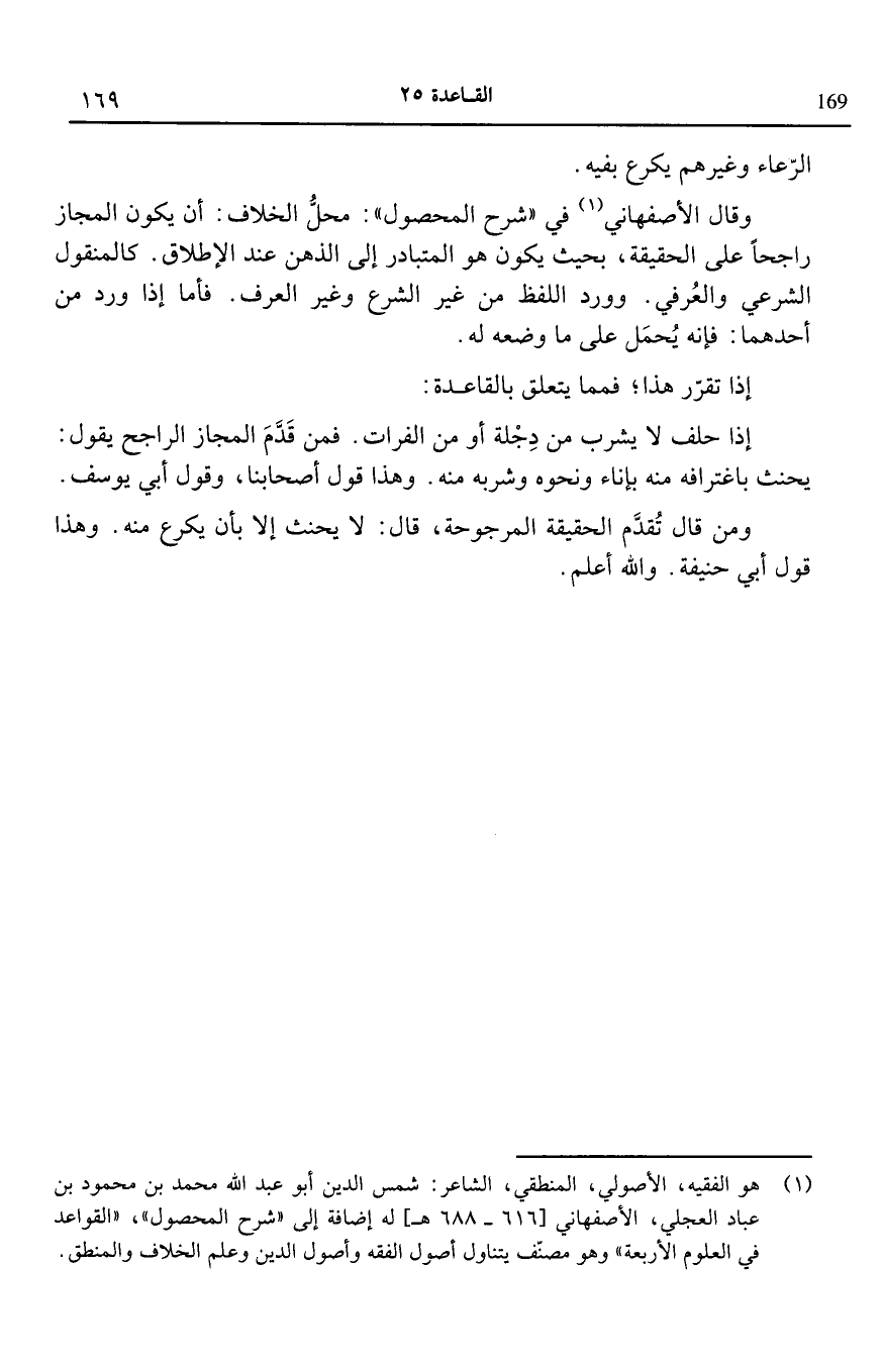1 هو الفقيه الأصولي المنطقي الشاعر: شمس الدين أبو عبد الله محمد بن محمود بن عباد العجلي الأصفهاني [616 – 688هـ] له إضافة إلى "شرح المحصول" "القواعد في العلوم الأربعة" وهو مصنف يتناول أصول الفقه وأصول الدين وعلم الخلاف والمنطق.