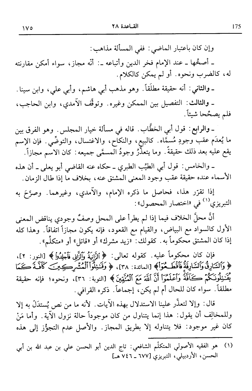 إذا تقرر هذا فحاصل ما ذكره الإمام والآمدي وغيرهما وصرح به التبريزى1 في اختصار المحصول.