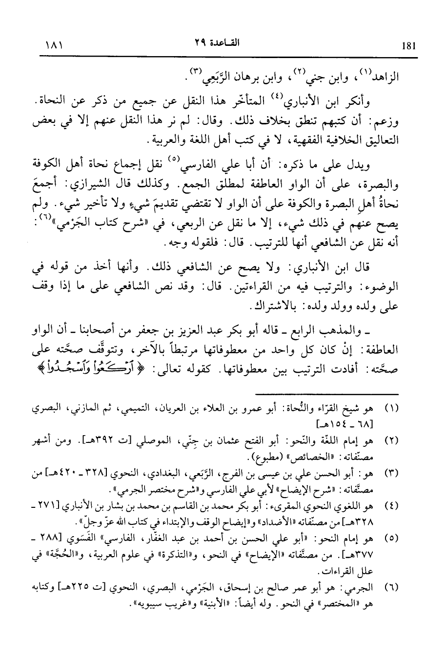 6 الجرمي: هو أبو عمر صالح بن إسحاق الجرمي البصري النحوي [ت 225هـ] وكتابه هو "المختصر" في النحو وله أيضا "الأبنية" و"غريب سيبويه".