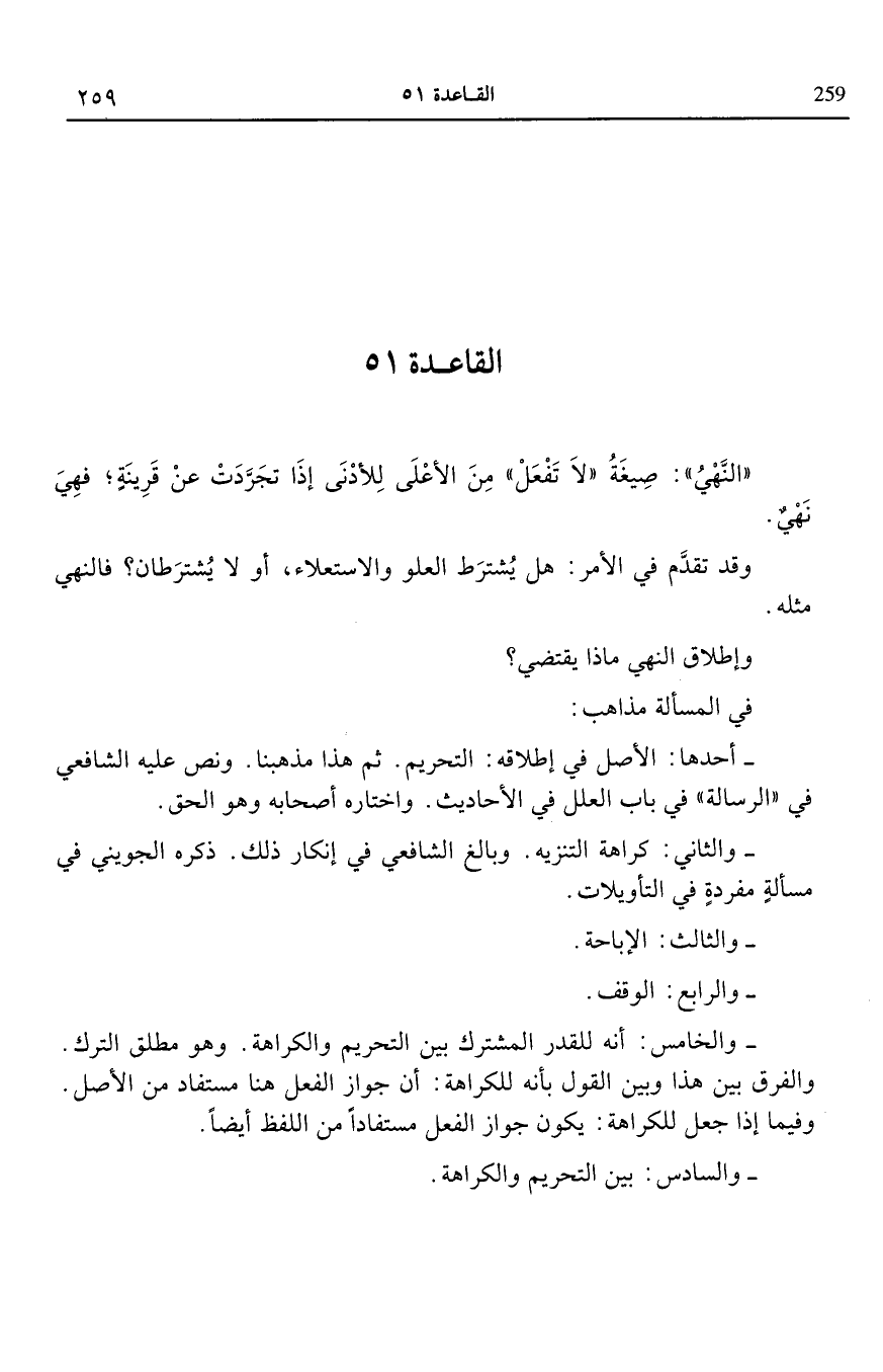 القاعدة 51: النهى صيغة لا تفعل من الأعلى للأدنى إذا تجردت عن قرينة فهى نهى.