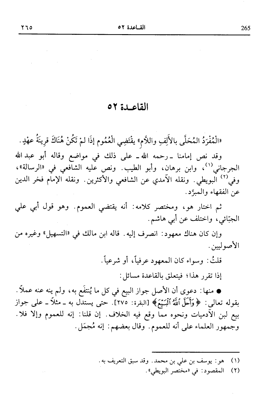 القاعدة 52: المفرد المحلى بالألف واللام يقتضى العموم إذا لم تكن هناك قرينة عهد.