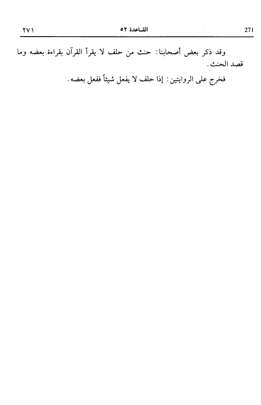 وقد ذكر بعض أصحابنا حنث من حلف لا يقرأ القرآن بقراءة بعضه وما قصد الحنث.