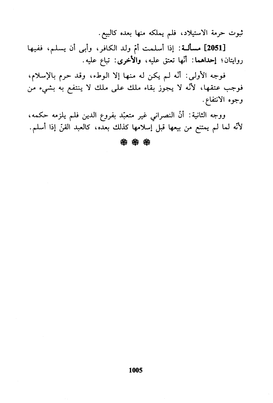 ووجه الثانية: أن النصراني غير متعبد بفروع الدين فلم يلزمه حكمه، لأنّه لما لم يمتنع من بيعها قبل إسلامها كذلك بعده، كالعبد القن إذا أسلم.