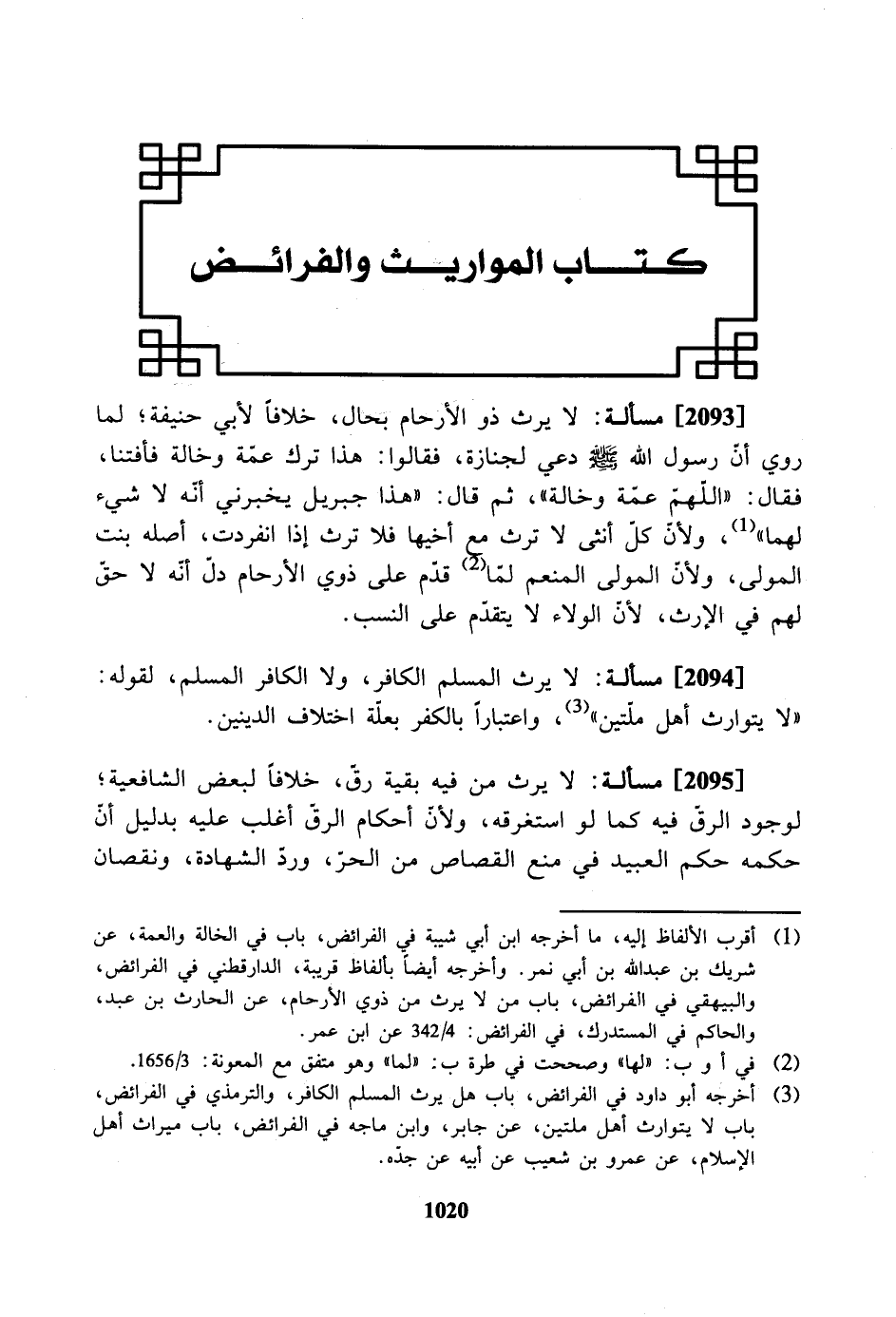 [2094] مسألة: لا يرث المسلم الكافر، ولا الكافر المسلم، لقوله: «لا يتوارث أهل ملّتين»، واعتبارًا بالكفر بعلة اختلاف الدينين.