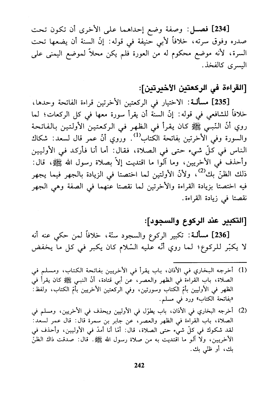 [234] (فصل): وصفة وضع إحداهما على الأخرى أن تكون تحت صدره وفوق سرته.