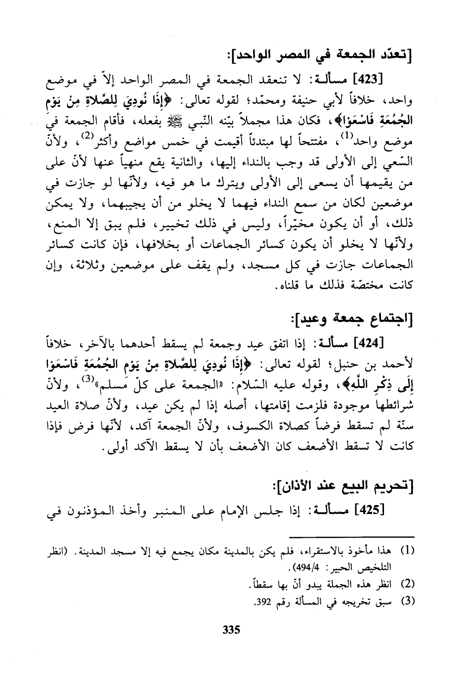 [425] مسألة: إذا جلس الإمام على المنبر وأخذ المؤذنون في