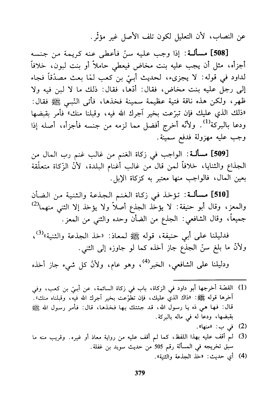 [509] مسألة: الواجب في زكاة الغنم من غالب غنم رب المال من الجذاع والثنايا، خلافاً لمن قال من غالب أغنام البلدة؛ لأن الزكاة متعلقة بعين المال، فالواجب منها معتبر به، كزكاة الإبل.