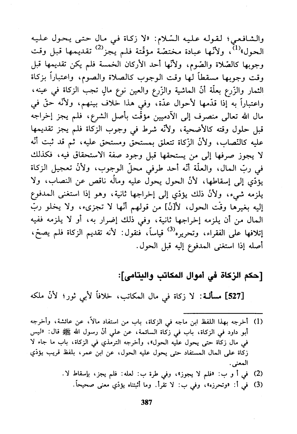 [حكم الزكاة في أموال المكاتب واليتامى]