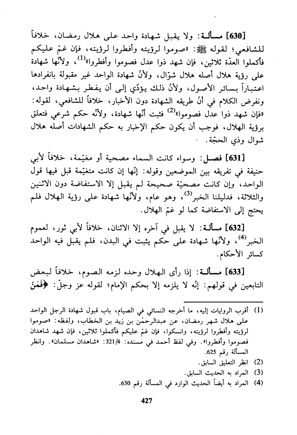 [633] مسألة: إذا رأى الهلال وحده لزمه الصوم. خلافاً لبعض التابعين في قولهم: إنه لا يلزمه إلا بحكم الإمام لقوله عز وجل: {فمن