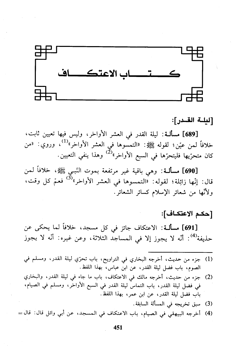 [690] مسألة: وهي باقية غير مرتفعة بموت النبي - صلى الله عليه وسلم -. خلافاً لمن قال إنها زائلة، لقوله: (التمسوها في العشر الأواخر)، فعم كل وقت، ولأنها من شعائر الإسلام كسائر الشعائر.