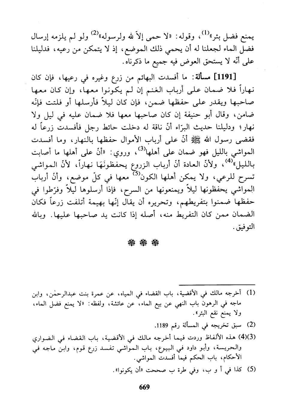 هذه الألفاظ وردت فيما اْخرجه مالك في الأقضية، باب القضاء في الضواري والحريسة، وأبو داود في البيوع، باب المواشي تفسد زرع قوم، وابن ماجه في الأحكام، باب الحكم فيما أفسدت المواشي.