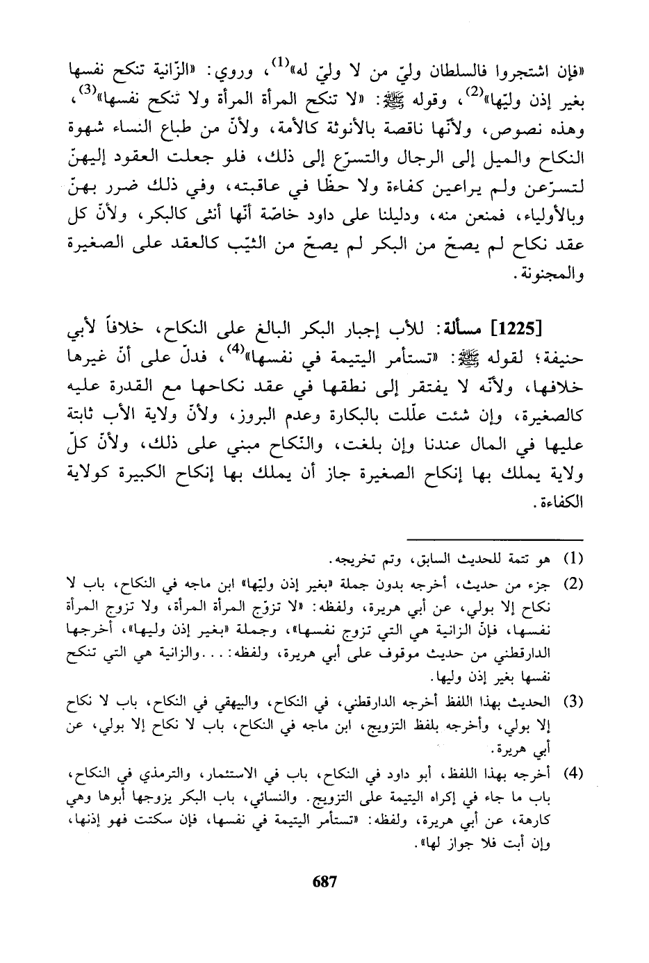 [1225] مسألة: للأب إجبار البكر البالغ على النكاح، خلافاً لأبي حنيفة؛ لقوله -صلى الله عليه وسلم-: " تستأمر اليتيمة في نفسها "، فدلَّ على أن غيرها خلافها، ولأنه لا يفتقر إلى نطقها في عقد نكاحها مع القدرة عليه كالصغيرة، وإن شئت عللت بالبكارة وعدم البروز، ولأن ولاية الأب ثابتة عليها في المال عندنا وإن بلغت، والنكاح مبني على ذلك، ولأن كل ولاية يملك بها إنكاح الصغيرة جاز أن يملك بها إنكاح الكبيرة كولاية الكفاءة.
