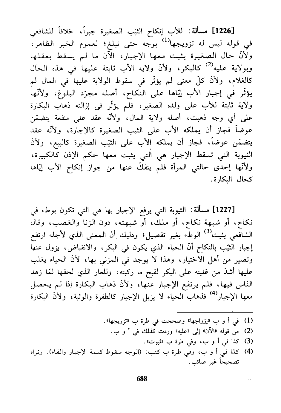 [1227] مسألة: الثيوبة التي يرفع الإجبار بها هي التي تكون بوطء في نكاح، أو شبهة نكاح، أو ملك، أو شبهته، دون الزنا والغصب، وقال الشافعي يثبث الوطء بغير تفصيل؛ ودليلنا. أن المعنى الذي لأجله ارتفع إجبار الثيب بالنكاح أن الحياء الذي يكون في البكر، والانقباض، يزول عنها وتصير من أهل الاختيار، وهذا لا يوجد في المزني بها، لأن الحياء يغلب عليها أشدّ من غلبته على البكر لقبح ما ركبته، وللعار الذي لحقها لمّا زهد الناس فيها، فلم يرتفع الإجبار عنها، ولأن ذهاب البكارة إذا لم يحصل معها الإجبار فذهاب الحياء لا يزيل الإجبار كالطفرة والوثبة، ولأن البكارة
