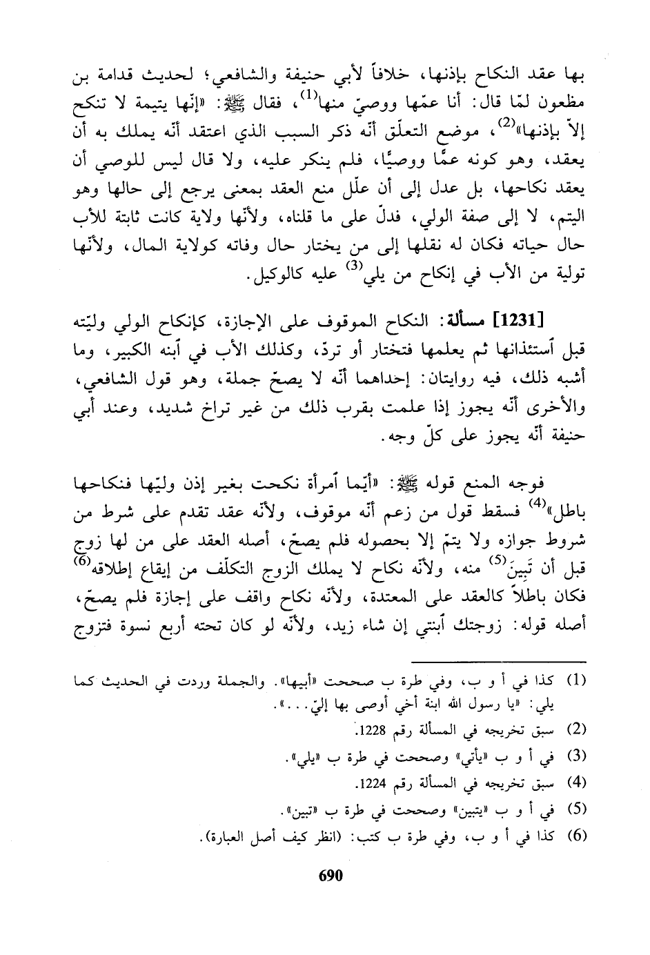 [1231] مسألة: النكاح الموقوف على الإجازة، كإنكاح الولي وليته قبل استئذانها ثم يعلمها فتختار أو ترد، وكذلك الأب في ابنه الكبير، وما أشبه ذلك، فيه روايتان: إحداهما أنه لا يصحّ جملة، وهو قول الشافعي، والأخرى أنّه يجوز إذا علمت بقرب ذلك من غير تراخ شديد، وعند أبي حنيفة أنه يجوز على كل وجه.