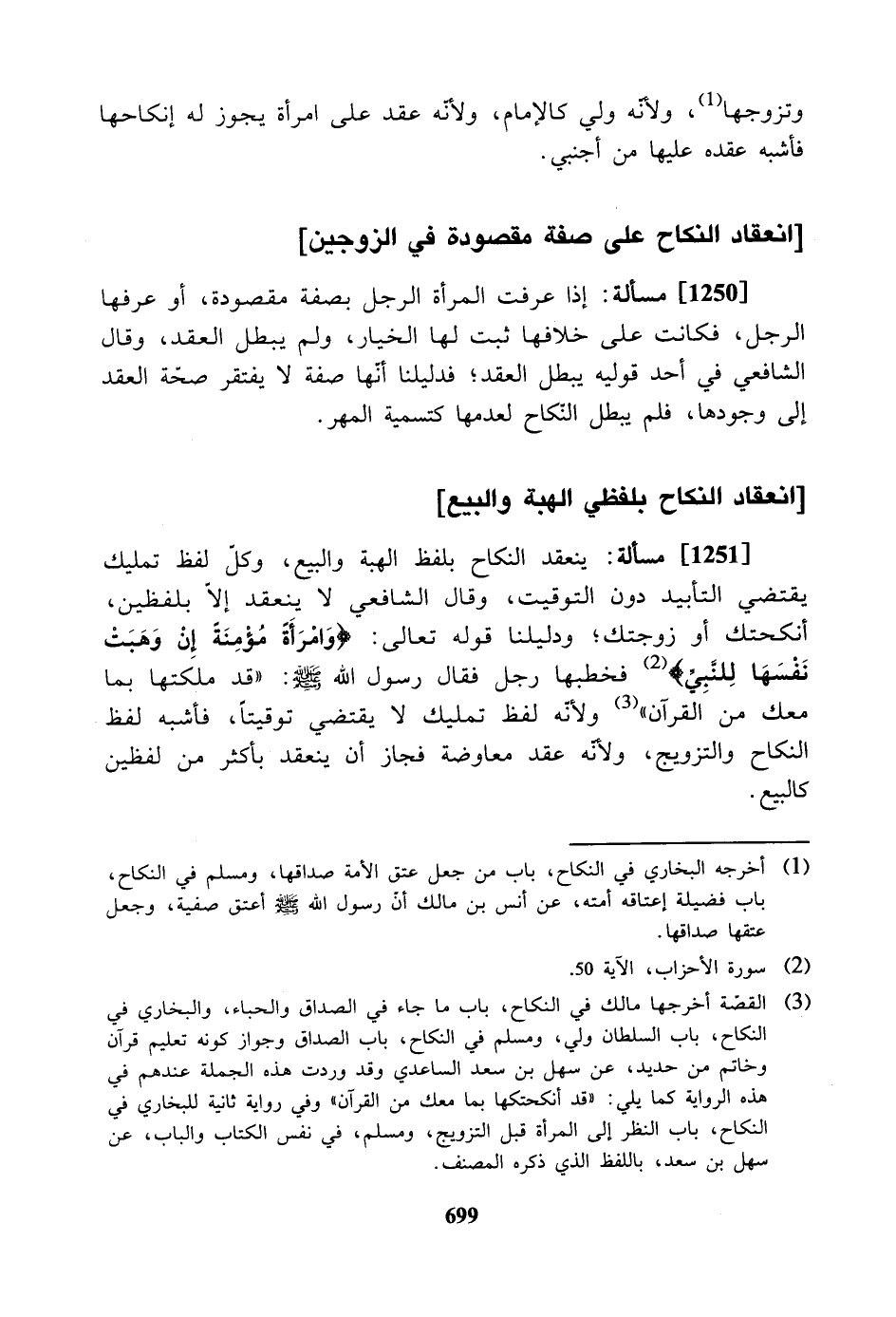 [1251] مسألة: ينعقد النكاح بلفظ الهبة والبيع، وكل لفظ تمليك يقتضي التأبيد دون التوقيت، وقال الشافعي لا ينعقد إلا بلفظين، أنكحتك أو زوجتك؛ ودليلنا قوله تعالى: " وامرأة مؤمنة إن وهبت نفسها للنبي " فخطبها رجل فقال رسول الله -صلى الله عليه وسلم-: " قد ملكتها بما معك من القرآن " ولأنه لفظ تمليك لا يقتضي توقيتاً، فأشبه لفظ النكاح والتزويج، ولأنه عقد معاوضة فجاز أن ينعقد بأكثر من لفظين كالبيع.