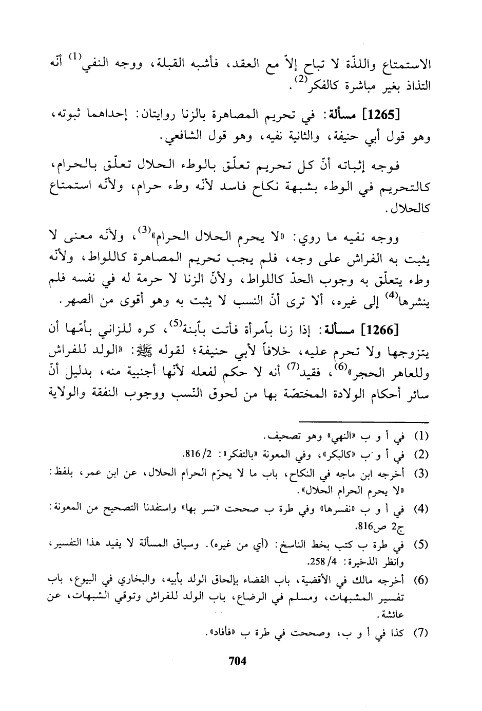 [1265] مسألة: فى تحريم المصاهرة بالزنا روايتان: إحداهما ثبوته، وهو قول أبي حنيفة، والثانية نفيه، وهو قول الشافعي.