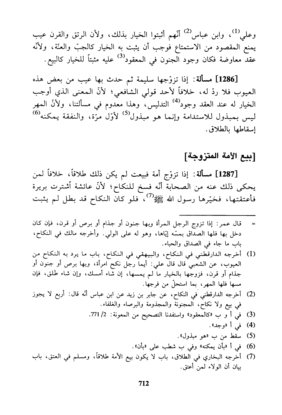 [1287] مسألة: إذا تزوج أمة فبيعت لم يكن ذلك طلاقاً، خلافاً لمن يحكى ذلك عنه من الصحابة أنه فسخ للنكاح؛ لأن عائشة اشترت بريرة فأعتقتها، فخيرها رسول الله صلى الله عليه وسلم، فلو كان النكاح قد بطل لم يثبت