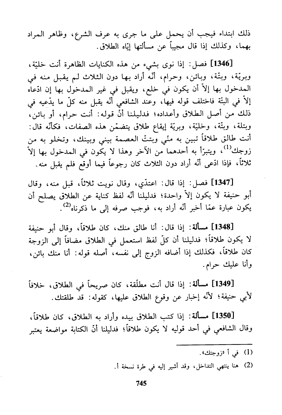 [1349] مسألة: إذا قال أنت مطلقة، كان صريحاً في الطلاق، خلافاً لأبي حنيفة؛ لأنه إخبار عن وقوع الطلاق عليها، كقوله: قد طلقتك.