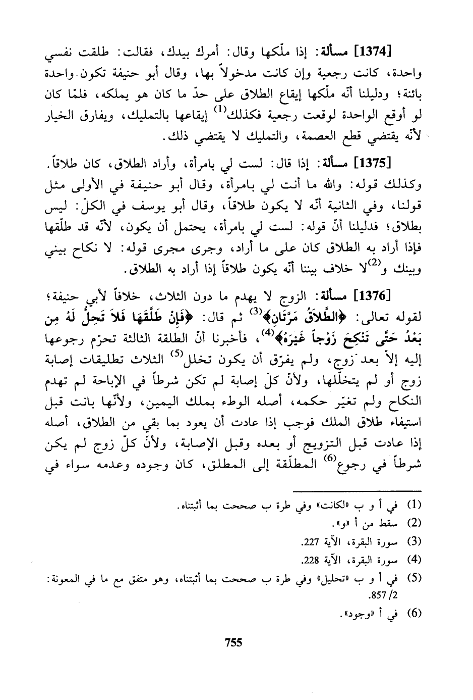 [1376] مسألة: الزوج لا يهدم ما دون الثلاث، خلافاً لأبي حنيفة؛ لقوله تعالى: " الطلاق مرتان " ثم قال: " فإن طلقها فلا تحل له من بعد حتى تنكح زوجاً غيره "، فأخبرنا أن الطلقة الثالثة تحرم رجوعها إليه إلا بعد زوج، ولم يفرق أن يكون تخلل الثلاث تطليقات إصابة