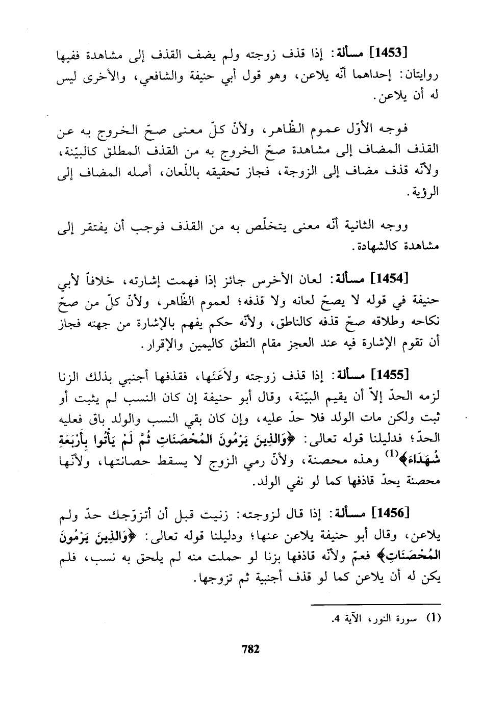 [1453] مسألة: إذا قذف زوجته ولم يضف القذف إلى مشاهدة ففيها روايتان: إحداهما أنّه يلاعن، وهو قول أبي حنيفة والشافعي، والأخرى ليس له أن يلاعن.