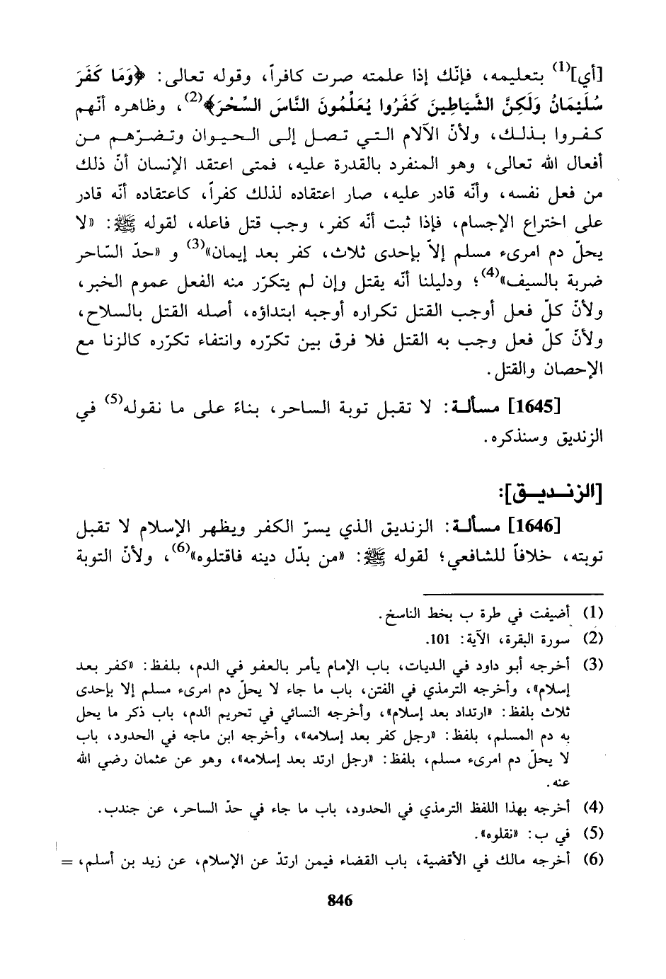 [1645] مسألة: لا تقبل توبة الساحر، بناءًا على ما نقوله في الزنديق وسنذكره.
