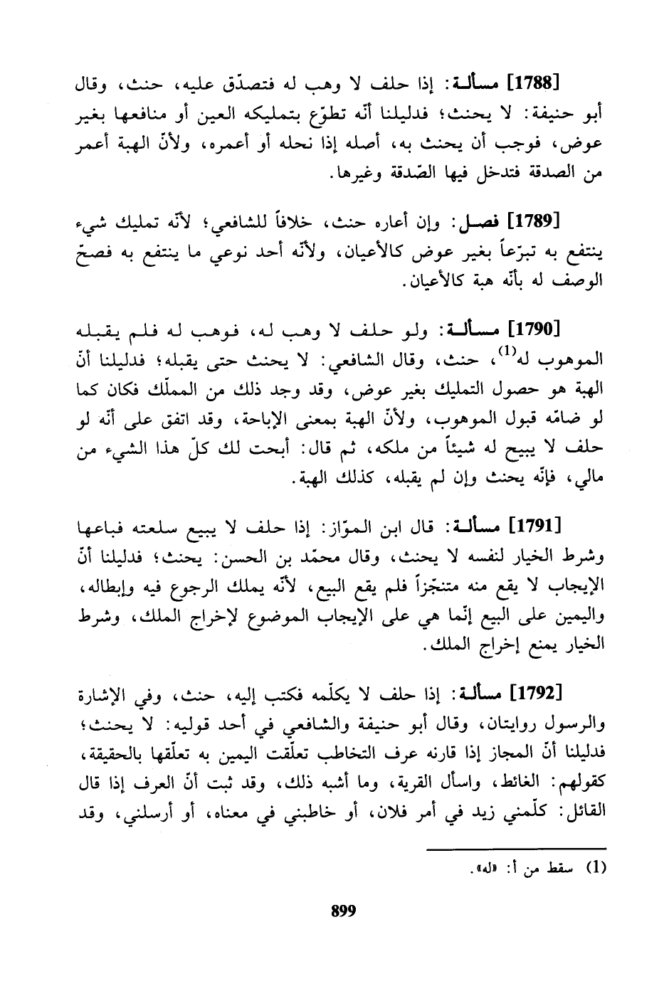 [1788] مسألة: إذا حلف لا وهب له فتصدّق عليه، حنث، وقال أبو حنيفة: لا يحنث؛ فدليلنا أنّه تطوع بتمليكه العين أو منافعها بغير عوض، فوجب أن يحنث به، أصله إذا نحله أو أعمره، ولأن الهبة أعمر من الصدقة فتدخل فيها الصدقة وغيرها.