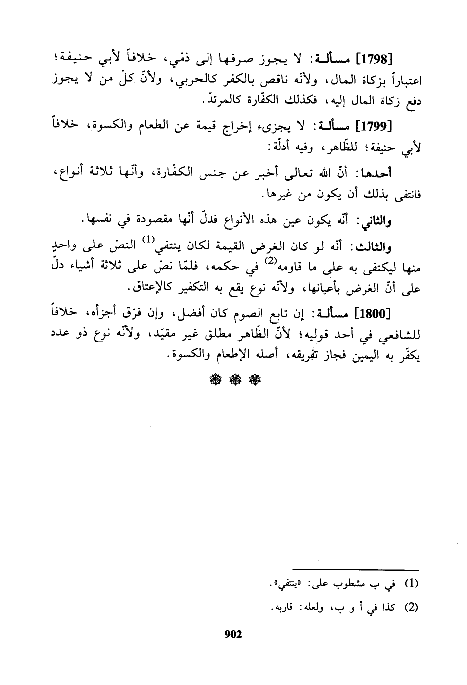 والثالث: أنه لو كان الغرض القيمة لكان ينتفي النص على واحد منها ليكتفى به على ما قاومه في حكمه، فلمّا نص على ثلاثة أشياء دلَّ على أن الغرض بأعيانها، ولأنه نوع يقع به التكفير كالإعتاق.