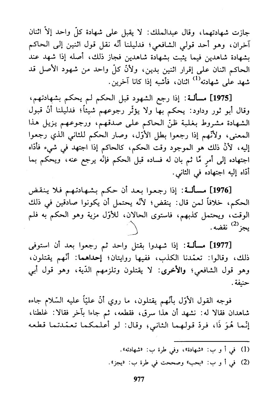 [1976] مسألة: إذا رجعوا بعد أن حكم بشهادتهم فلا ينقض الحكم، خلافاً لمن قال: ينقض؛ لأنه يحتمل أن يكونوا صادقين في ذلك الوقت، ويحتمل كذبهم، فاستوى الحالان، للأول مزية وهو الحكم به فلم يجز نقضه.