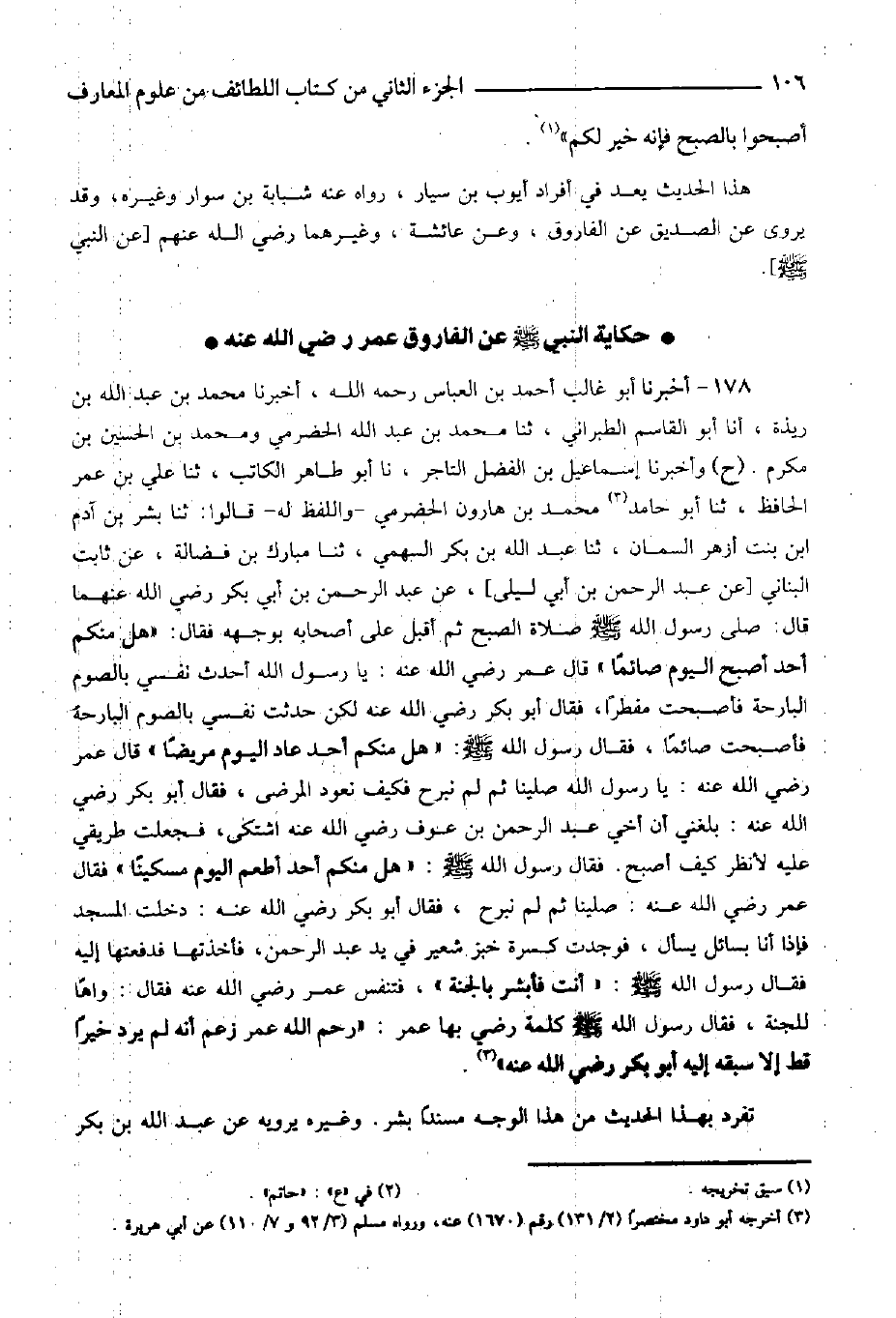 171- أخبرنا أبو علي الحداد رحمه الله إذناً، ثنا أبو نعيم، ثنا سليمان بن أحمد، ثنا عبدان، ثنا يحيى بن عبد الله الوراق البغدادي، ثنا محمد بن عمر الواقدي، عن عاصم بن عمر بن حفص بن عاصم بن عمر، عن أيوب بن عتبة، عن يحيى، عن معمر، عن الزهري، عن سعيد بن المسيب، عن أبي هريرة رضي الله عنه، عن النبي صلى الله عليه وسلم أنه قال: ((لا فرع ولا عتيرة)) .