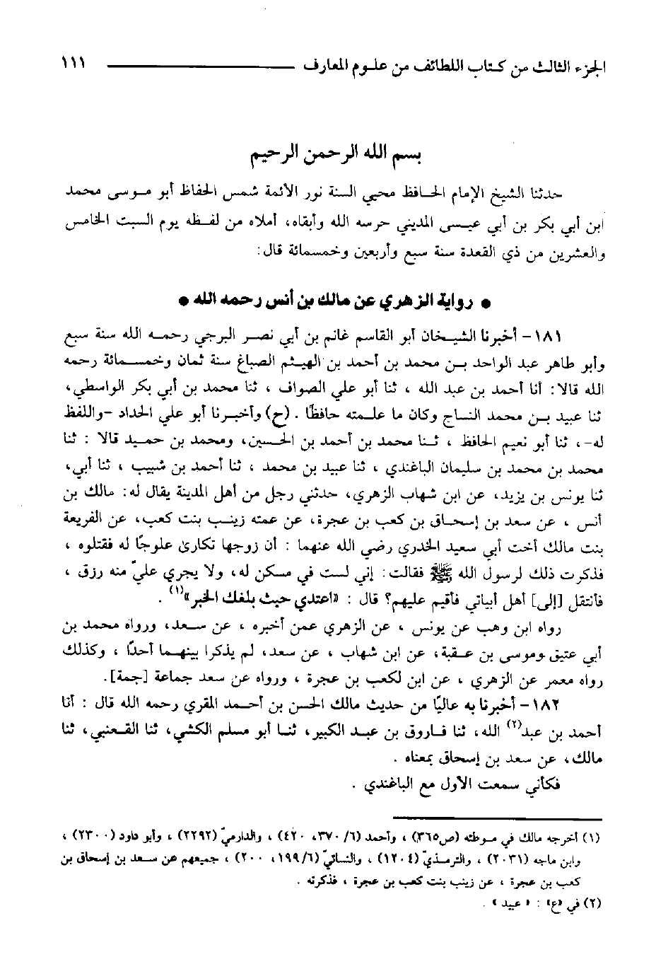 180- أخبرنا أبو منصور بن عبد الرحمن بن محمد بن عبد الواحد بن زريق ببغداد، أنا أحمد بن علي الحافظ، أنا الحسن بن محمد الجوهري، أنا طلحة بن محمد بن جعفر، ثنا أبو بكر الصواف، ثنا الكديمي، ثنا علي بن المديني قال: خرج سفيان بن عيينة إلى أصحاب الحديث وهو ضجر فقال: أليس من الشقاء أن أكون جالست ضمرة بن سعيد، وجالس أبا سعيد الخدري، وجالست عمرو بن دينار، وجالس جابر بن عبد الله، وجالست عبد الله بن دينار، وجالس ابن عمر، وجالست الزهري، وجالس أنس بن مالك -[108]- رضي الله عنهم -حتى عدد جماعة- ثم أنا أجالسكم، فقال له حدث في المجلس: انتصف يا أبا محمد؟ قال: إن شاء الله، قال له: والله لشقاء من جالس أصحاب رسول الله صلى الله عليه وسلم بك أشد من شقائك بنا فأطرق وتمثل بشعر أبي نواس: