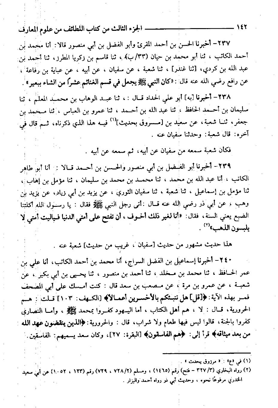 227- أخبرنا إسماعيل بن الفضل السراج، أنا أبو طاهر بن عبد الرحيم، أنا الدارقطني، ثنا جعفر بن محمد بن نصير، ثنا محمد بن عبد الله بن سليمان، ثنا عامر بن إسماعيل، ثنا مؤمل، ثنا سفيان حدثني عباد بن كثير قال: قلت لأبي حنيفة: رجل قال: أنا أعلم أن محمداً صلى الله عليه وسلم حق وأنه رسول الله -وذكر كلمة أخرى- أمؤمن هو؟ قال: نعم مؤمن.