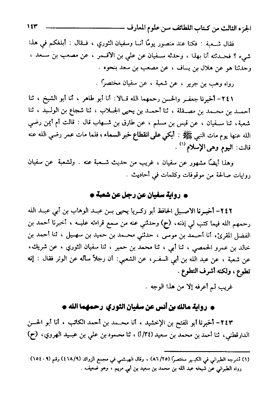 231- أخبرنا أبو عبد الله محمد بن إبراهيم التاجر رحمه الله، أنا أحمد بن الفضل الكاتب وغيره، قال: أخبرنا الحسين بن علي بن الحسن الهمداني، ثنا أبو بكر محمد بن علي الفافا، أنا عبد الرحمن بن أبي حاتم الرازي قال: ذكره أبي، ثنا العباس بن الوليد بن مزيد، أخبرني عبيد بن حبان أو غيره، عن ابن لهيعة قال: قدم علينا بكر بن سوادة فقلت له: من خلفت يعلم أهل الحجاز؟ قال: غلام من ذي أصبح، يعني: مالك بن أنس.