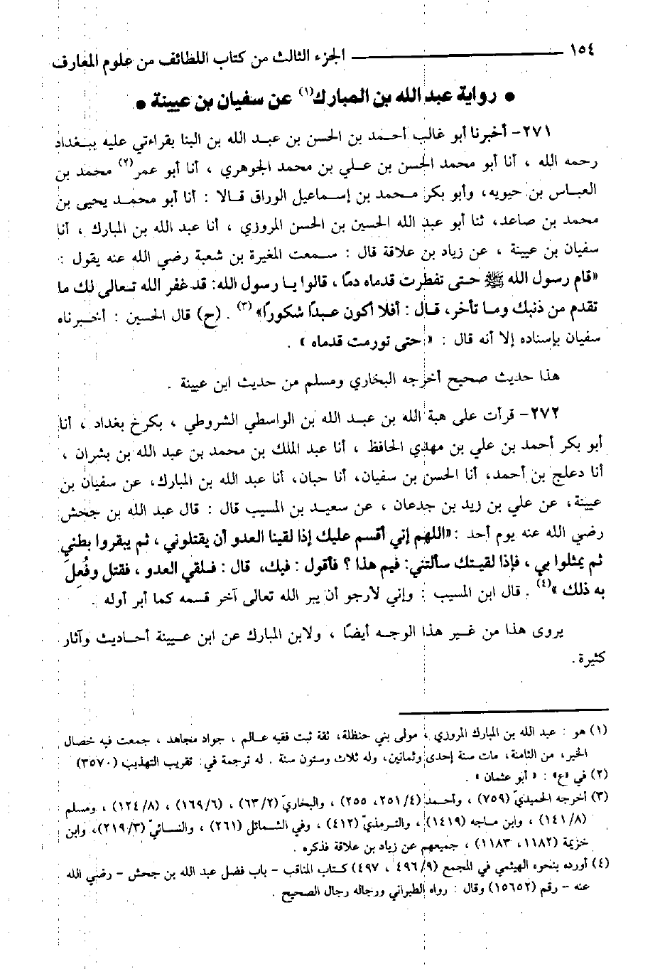 260- (ح) قال: الخطيب، أنا علي بن طلحة المقري، أنا أبو الفتح محمد بن إبراهيم الطرسوسي، أنا محمد بن محمد بن داود الكرخي، ثنا عبد الرحمن بن يوسف بن خراش قال: بلغني عن ابن مسلم بن وارة قال: سمعت سليمان بن داود الهاشمي يقول: ربما أحدث بحديث ولي نية، فإذا أتيت على بعضه تغيرت نيتي، وإذا الحديث الواحد يحتاج إلى نيات.