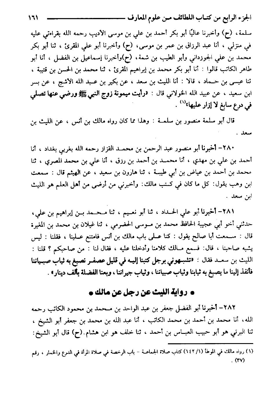 274- قرأت على أبي الرجاء أحمد بن أبي الفضل المقرئ، أنا أبو الفضل عبد الرحمن بن أحمد بن الحسن الرازي، أنا محمد بن الحسن إجازة، عن أبي نصر الطوسي، عن أبي علي اللؤلؤي: