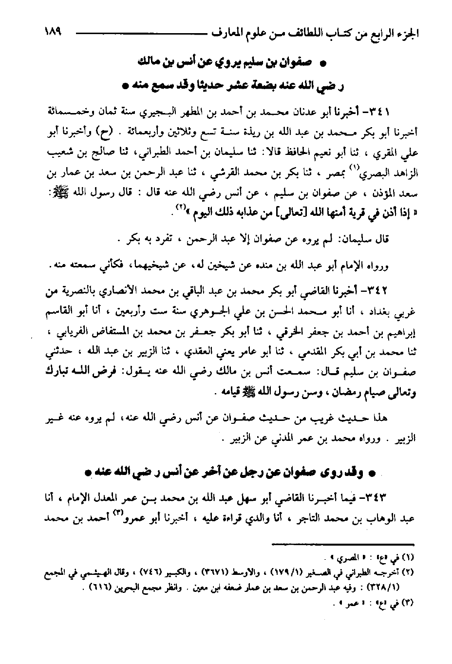327- (ح) وبه قال: ثنا الطبراني، ثنا علي بن عبد العزيز، حدثنا أبو عبيد، ثنا الحجاج، عن ابن جريج أخبرني عمرو بن دينار، أن ابن شهاب أخبره، عن عبيد الله بن عتبة، عن ابن عباس رضي الله عنهما، عن الصعب بن جثامة رضي الله عنه: أن رسول الله صلى الله عليه وسلم قيل له: إن خيلاً أغارت من الليل، وأصابت من أبناء المشركين، فقال رسول الله صلى الله عليه وسلم: ((هم من آبائهم)) . -[184]- هذان الحديثان صحيحان أخرجهما من حديث الزهري الشيخان، فالحديث الأخير أخرجه مسلم من حديث عمرو عنه، وقد روى عمرو، عن طاووس، عن حجر المدري، عن ابن عباس رضي الله عنه حديث العمري، ذكرناه في رباعيات التابعين، وروى أيضاً عن أبي الشعثاء، عن عكرمة، عن ابن عباس ذكرناه فيما تقدم.