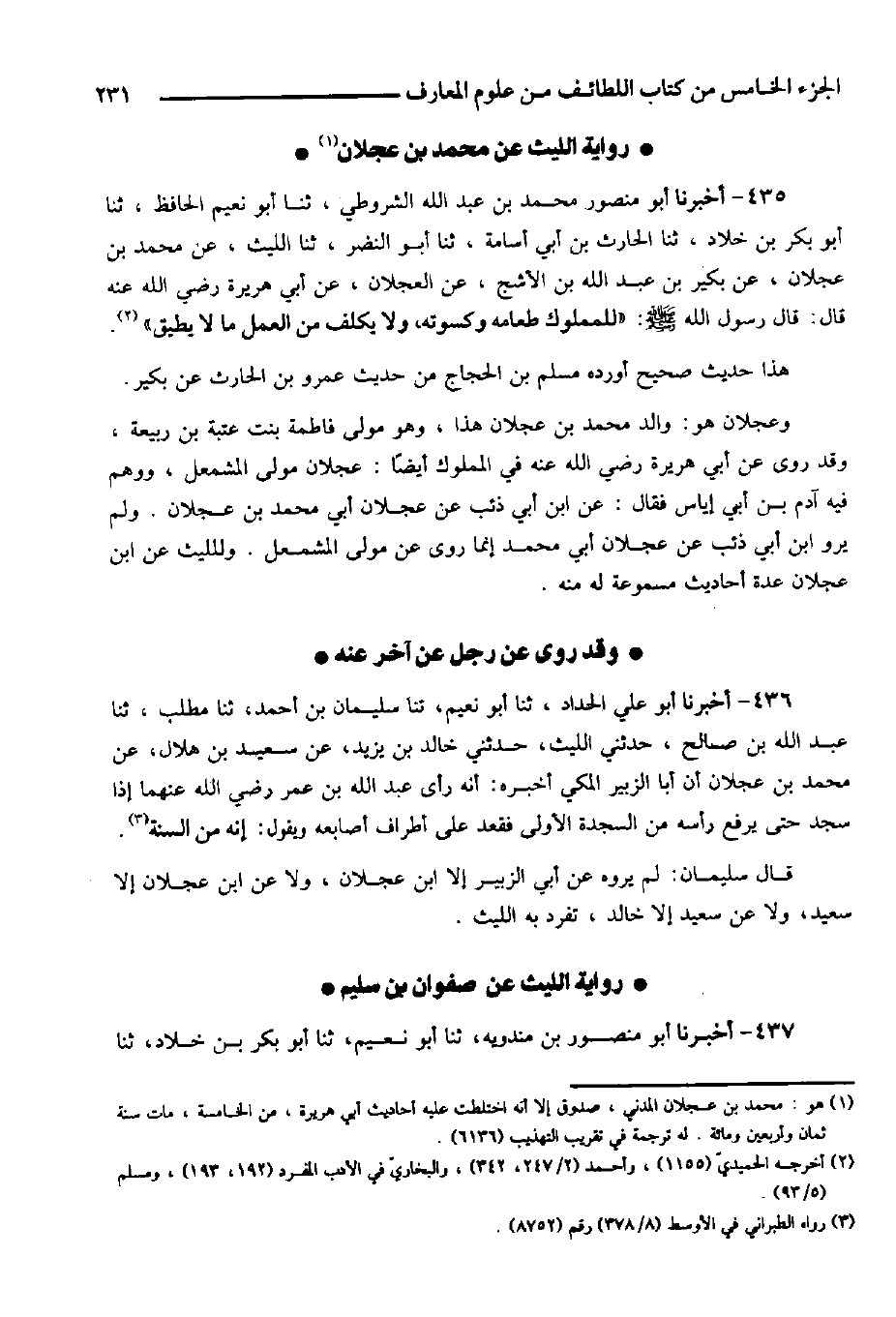 الليث بن سعد له نسخة سمعها من سعيد بن أبي سعيد المقبري بعضها عن أبي هريرة وبعضها عن أبيه وغيره عن أبي هريرة رضي الله عنهم