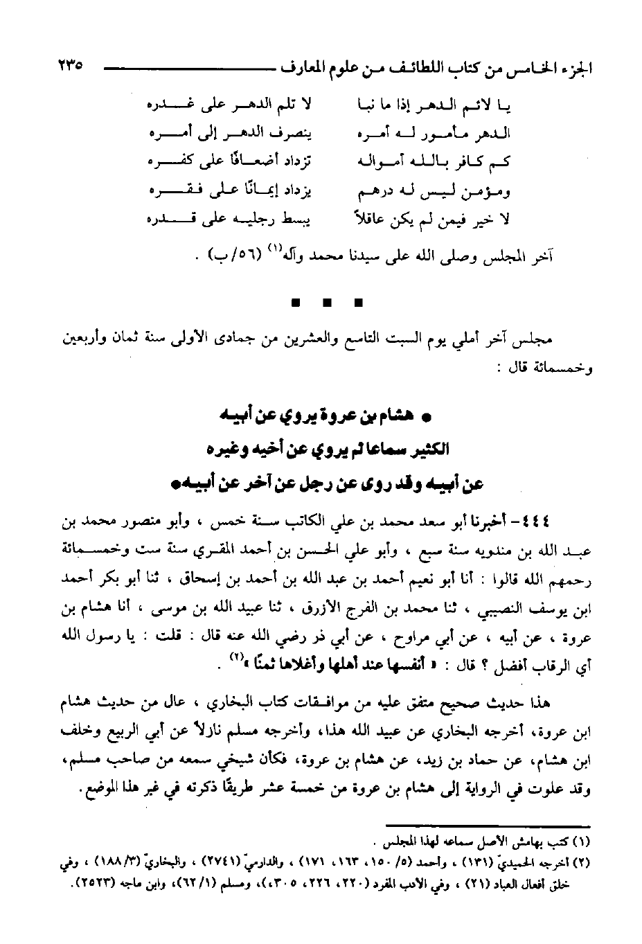 431- أخبرنا إسماعيل بن الإخشيد السراج، أنا أبو طاهر بن عبد الرحيم، (ح) وأخبرنا أحمد بن علي المؤدب، أنا أبو الطيب بن شمة قالا: أنا أبو بكر بن المقري، أنا محمد بن زبان، ثنا محمد بن رمح، أنا الليث، عن يزيد بن الهاد، عن سهل بن أبي صالح، عن النعمان بن أبي عياش الزرقي، عن أبي سعيد الخدري رضي الله عنه قال: قال -[229]- رسول الله صلى الله عليه وسلم: ((ما من عبد يصوم يوماً في سبيل الله إلا باعد الله تعالى بذلك اليوم وجهه عن النار سبعين خريفاً)) .