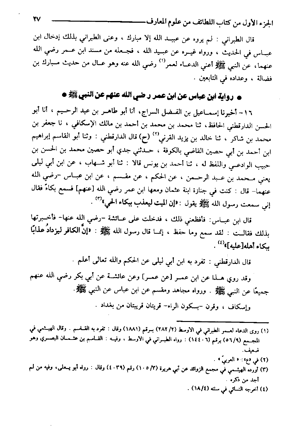 14- أخبرنا به عالياً صحيحاً أبو القاسم غانم بن أبي نصر المبرحي سنة سبع وأبو علي الحداد سنة أربع وسنة ست، أنا أبو نعيم، وأنا غانم أيضاً، أنا أبو عبد الله الجمال إجازة قالا: ثنا عبد الله بن جعفر، ثنا أبو مسعود الرازي، ثنا عبيد الله بن موسى، ذكر إن شاء الله عن إسرائيل، عن منصور، عن خالد بن سعد قال: خرجنا ومعنا غالب بن أبجر فمرض في الطريق، فقدمنا المدينة وهو مريض، فعاده ابن أبي عتيق أبو بكر فقال لنا: عليكم بهذه الحبيبة السوداء فخذوا منها سبعاً أو خمساً واسحقوها واقطروها في أنفه -[26]- بقطرات من زيت في هذا الجانب وهذا الجانب فإن عائشة –رضي الله عنها- حدثتني أنها سمعت النبي صلى الله عليه وسلم يقول: ((إن هذه الحبة شفاء من كل داء إلا أن يكون السام)) .