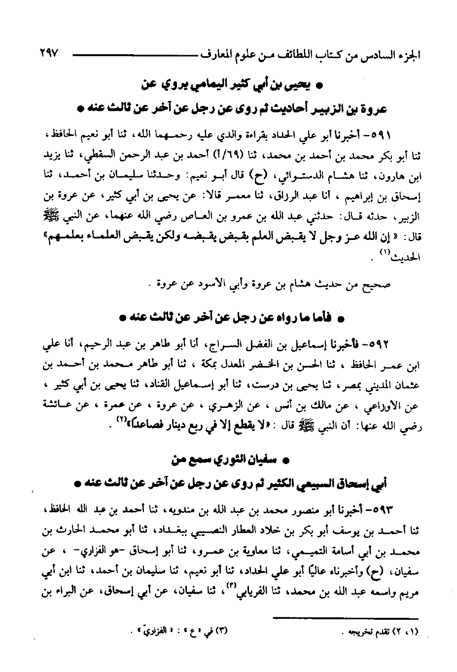 574- فأخبرنا إسماعيل السراج، أنا أبو طاهر، أنا الدارقطني، ثنا محمد بن الحسن النقاش، ثنا الفضل بن محمد العطار بأنطاكية، ثنا الحسين بن إسحاق الأنطاكي، ثنا الوليد بن مسلم، ثنا هشام بن عمار الدمشقي، عن أبيه أن أبا عبيدة بن الجراح -رضي الله عنه- لما هزم الروم يوم اليرموك قال لأصحابه: صلوا على ظهور دوابكم لقول رسول الله صلى الله عليه وسلم: ((لا يرفع النصر ما دام الطلب)) .