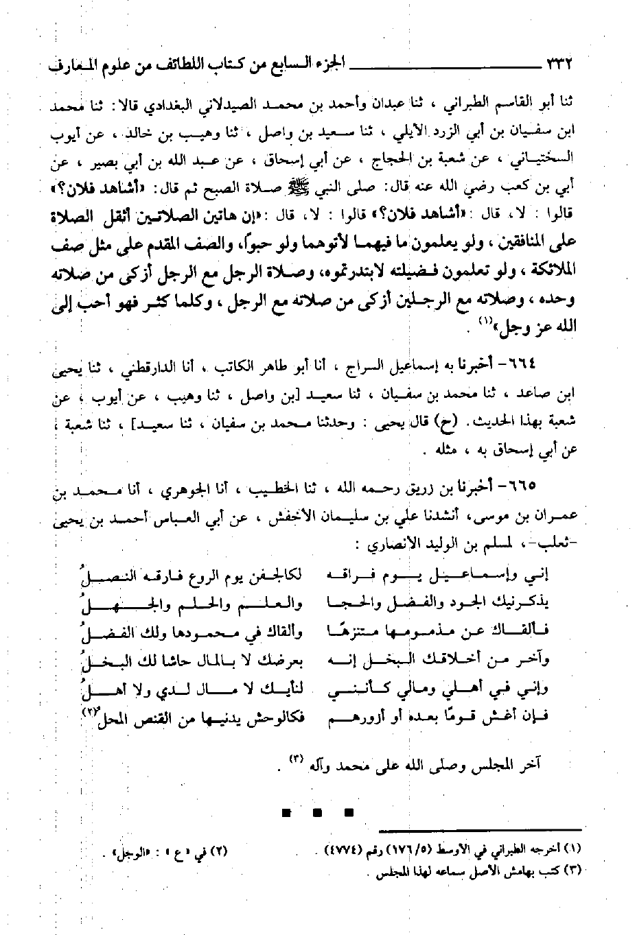 ولقد كانوا يتسمعون الحديث نازلاً أولاً [ثم يهتدون بعد ذلك] إلى سماعه عالياً، فلا يدعون رواية النازل أصلاً بل كانوا يروونه مرة نازلاً ومرة عالياً قضاء لحق كل واحد من الشيخين ومعرفة لحق من أسمعه أولاً ذلك الحديث، وهذا هو حق العلم. ولإسناد هذا الحديث علل ليس هذا موضوع ذكرها.