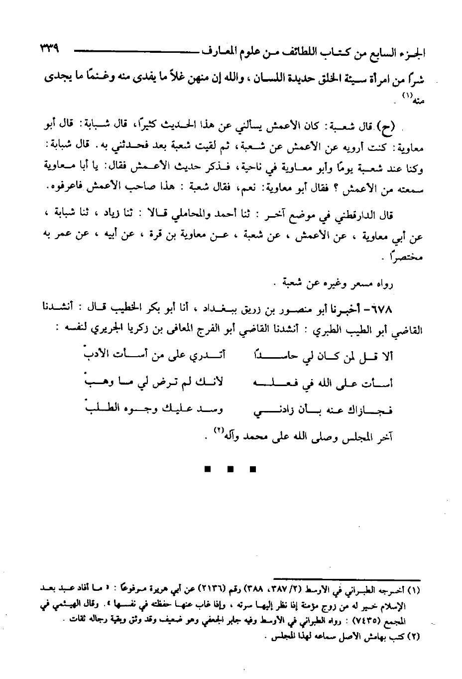 قال سفيان: هذا الحديث حدثناه عبد الكريم الجزري، عن عبدة، عن عاصم، فلما قدم عبدة أتيناه نسأله عنه فقال: إنما حدثنيه عاصم، وعاصم هذا حاضر، فذهبنا إلى -[331]- عاصم فسألناه عنه، فحدثنا به هكذا، ثم سمعته منه بعد ذلك فمرة يقفه على عمر ولا يذكر فيه عن أبيه، وأكثر ذلك كان يحدث به عن عبد الله بن عامر، عن أبيه، عن عمر رضي الله عنه، عن النبي صلى الله عليه وسلم. قال سفيان: وربما سكتنا عن هذه الكلمة: يزيدان في الأجل، ولا يحدث به مخافة أن يحتج به هؤلاء القدرية، وليس لهم فيها حجة.